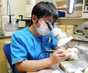 歯科技工士の吉田健司です。あやこ歯科クリニックに勤めて15年になります。以前では自分の作った技工物がどのように入っているのか分からず、ただ物を作っているという感覚で働いていました。しかし、当院に勤めて院長や患者様の実際の感想がダイレクトに聞くことが出来る環境になって、私にとってもの凄く勉強になり、もっともっと患者様にとってより良い技工物を作りたいという気持ちで、日々頑張っています。